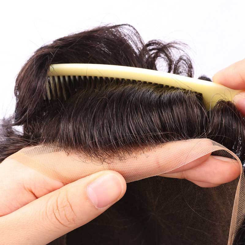 • Strong PU back with durable lace toupee